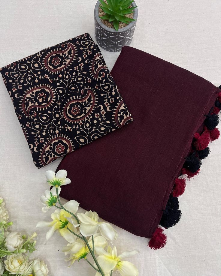 Beauty - Maroon Mangalagiri Plain Cotton Saree - PC-38