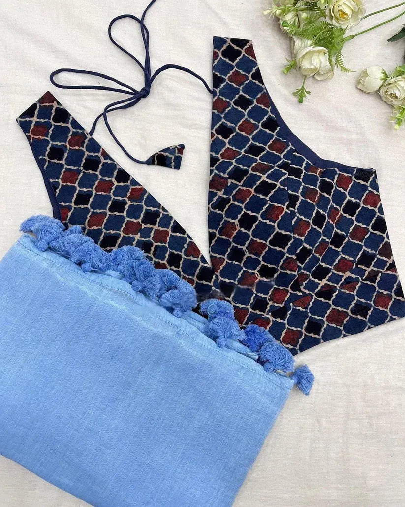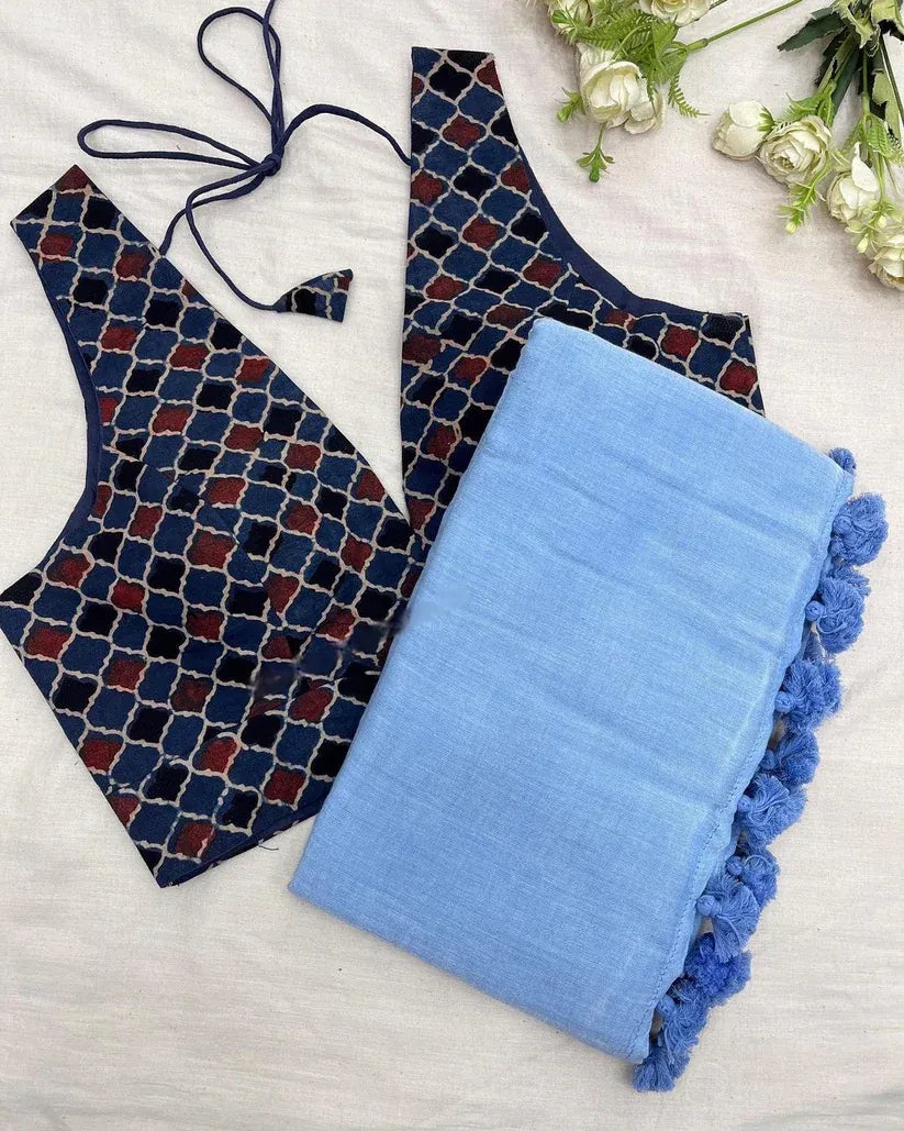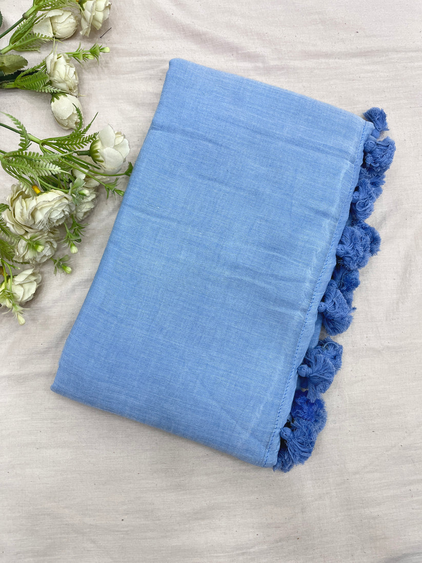 Catchy - Sky Blue Mangalagiri Plain Cotton Saree - PC-34